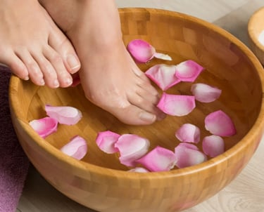 Um ritual de relaxamento e bem-estar. O escalda pés combina água morna, aromas e ervas naturais para aliviar o cansaço e ativar a circulação.